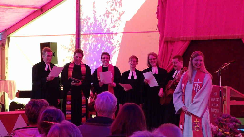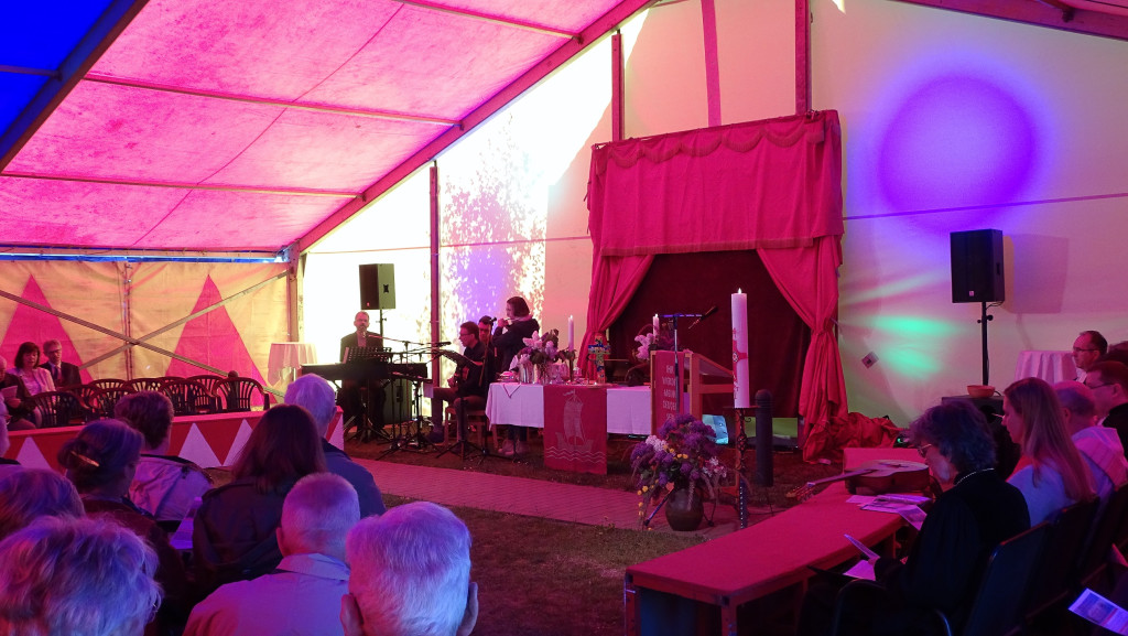 Der Sonntag startete in einem großen Zirkuszelt mit einem feierlichen Gottesdienst, in dem die stellvertretende bayerische Landesbischöfin, Frau Susanne Breit-Keßler die Predigt hielt.